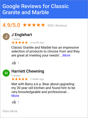 We were very fortunate to have had the opportunity to do business with Classic Granite and Marble. We are extremely happy with our granite countertops. Classic Granite does beautiful work!